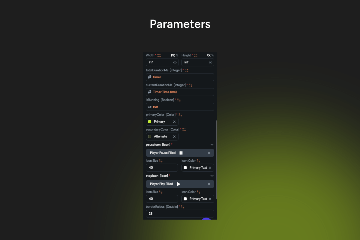 Keywords: timer, countdown, focus timer, productivity timer, pomodoro, session timer, workout timer, study timer, pause resume, stop reset, time presets, quick presets, MM:SS display, neon UI, glowing border, animated progress, haptics, vibration, completion alert, local notifications, background safe, accessibility, large buttons, dark mode, light mode, theming, FlutterFlow widget, Flutter component, mobile UI, task management, habit tracking, session history, data binding, Firestore, Supabase, responsive design, modern design, minimal UI, user friendly.