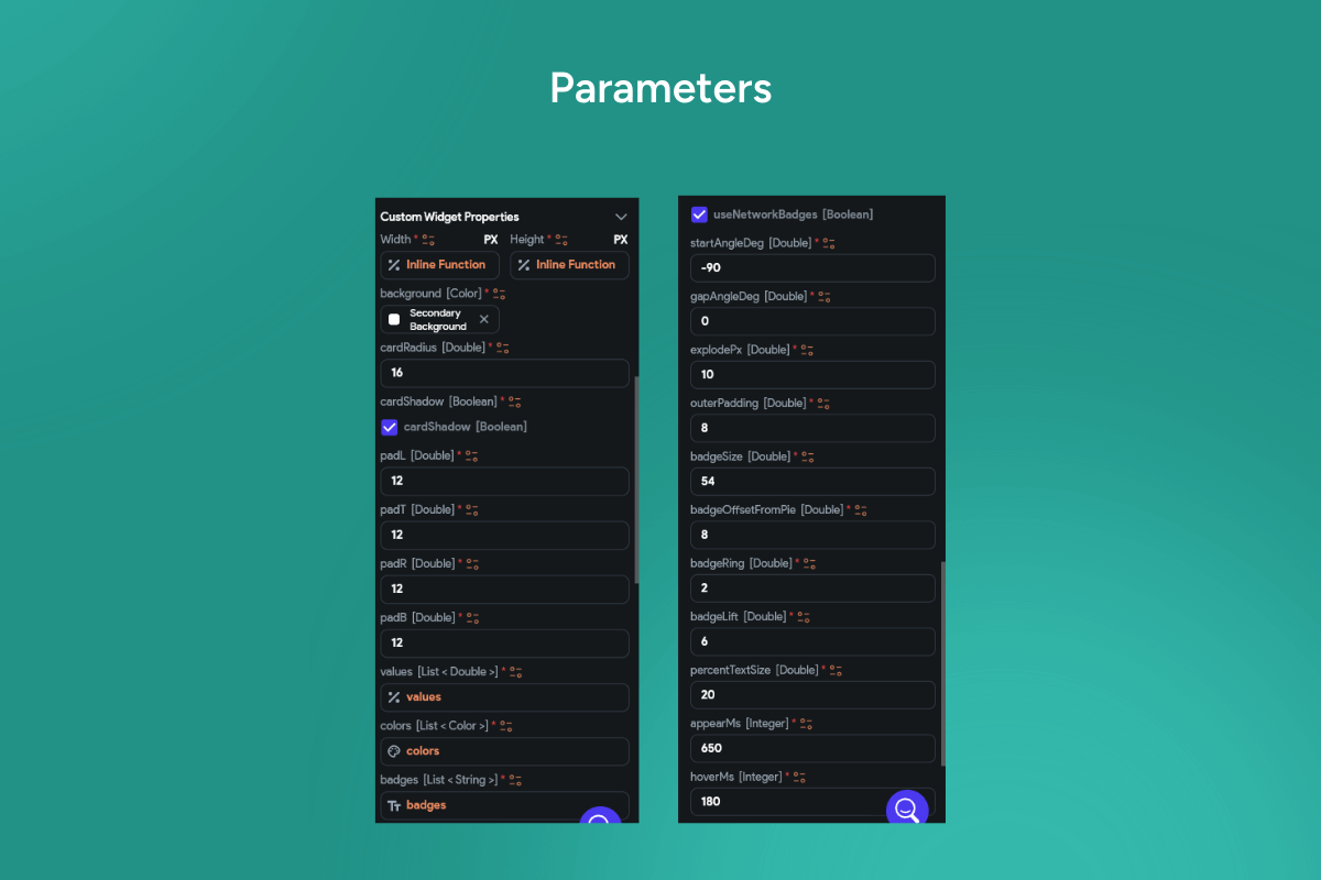 pie chart, exploded slice, percentage labels, avatar callouts, icon labels, category distribution, segment share, data visualization, dashboard chart, analytics, KPI, interactive chart, responsive chart, mobile chart, Flutter chart, FlutterFlow component, light mode, dark mode.