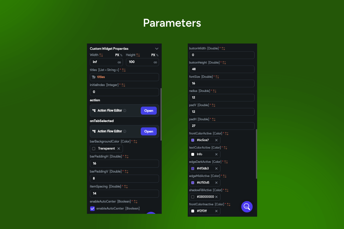 tab bar, segmented control, capsule tabs, neumorphic UI, layered shadows, raised pill, animated indicator, spring animation, swipe between tabs, pageview sync, icon + label, badges, unread counter, reselect to top, deep link, state restoration, haptic feedback, dark mode, RTL, reduce motion, accessibility, ARIA, safe area, high performance, 60fps, theming tokens, Flutter widget, FlutterFlow component, modern navigation, premium design.