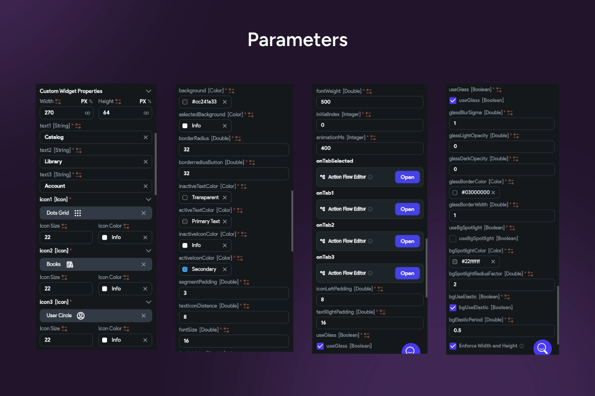 tab bar, bottom navigation, capsule tabs, morphing indicator, animated highlight, icon to label, badges, unread counter, swipe between tabs, haptic feedback, spring animation, blur background, dark mode, RTL, reduce motion, accessibility, router integration, deep link, state restoration, high performance, Flutter widget, FlutterFlow component, modern navigation, premium UI.
