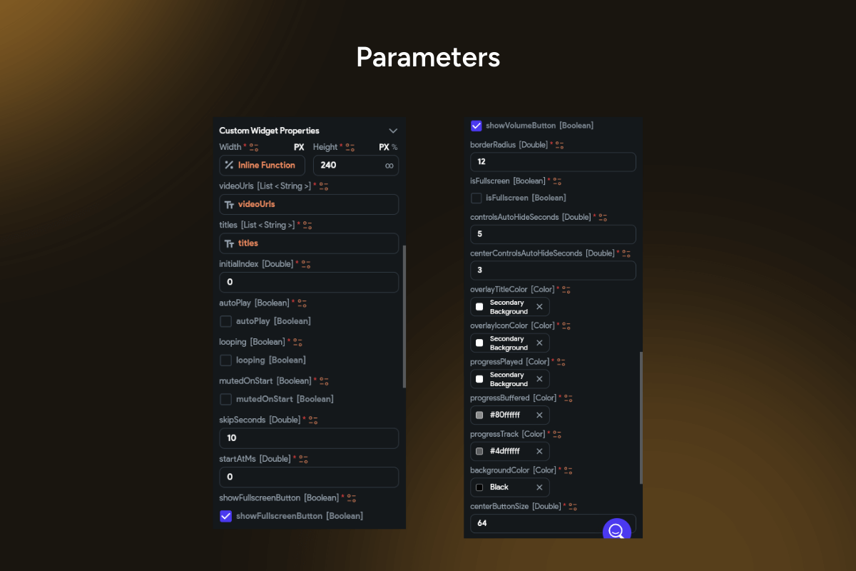 full cover player, full-bleed video, overlay controls, big play button, skip forward, skip back, progress bar, scrubber, timecodes, mute/unmute, volume toggle, fullscreen video, title overlay, hashtags overlay, autoplay, loop video, poster image, buffering indicator, error fallback, gesture controls, keyboard controls, responsive video, rounded corners, drop shadow, immersive playback, social video, reels player, short-form video, tutorial player, product demo video, hero header video, inline video, Flutter widget, FlutterFlow component, mobile video, web video, adaptive scaling, aspect ratio cover, smooth playback, media component.