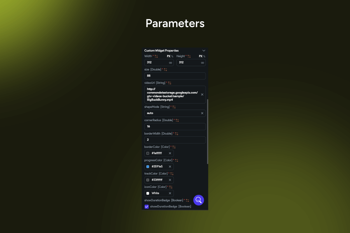 circular video, round video player, circle mask, full-cover scaling, play button, duration chip, progress ring, looping video, muted start, autoplay, overlay controls, lightweight player, poster image, buffering indicator, error fallback, responsive video, mobile web video, HLS, MP4, gesture controls, draggable scrub (optional), accessible controls, analytics events, minimal UI, modern media player, hero section video, avatar video, product teaser, gallery card, Flutter widget, FlutterFlow component, adaptive layout, soft shadow, premium styling, edge-to-edge, smooth playback.