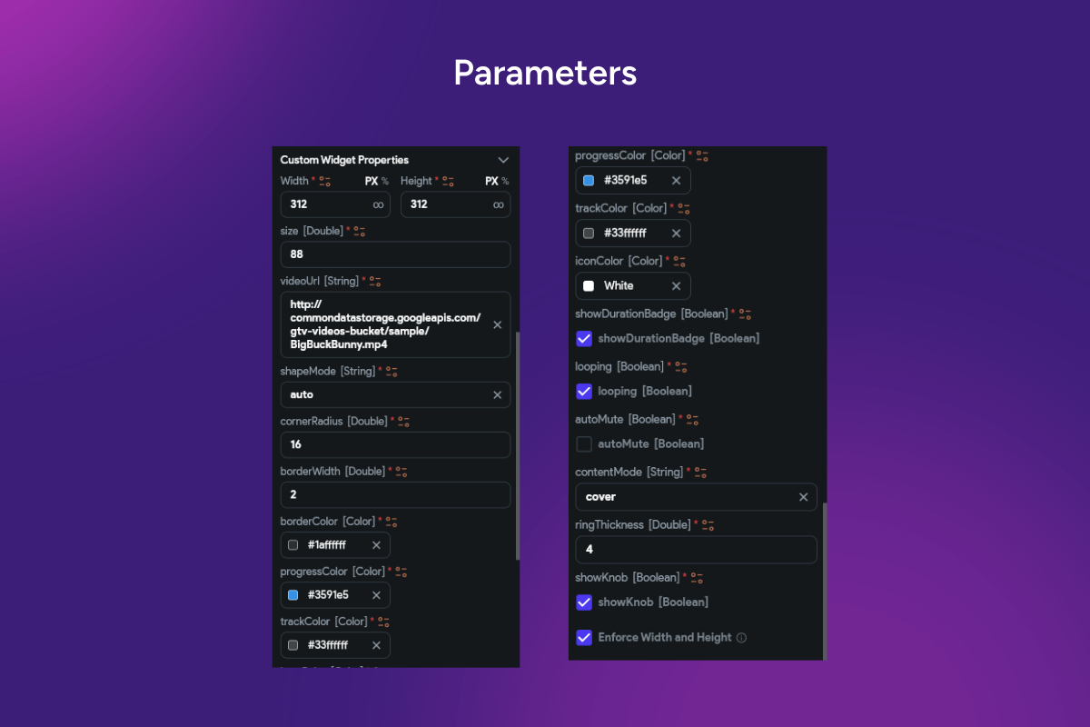 circular video, round video player, progress ring, radial progress, ring scrub, circular mask, full-cover scaling, play button, tap to play, autoplay, loop video, muted start, duration chip, time badge, poster image, lazy loading, buffering indicator, error fallback, gesture controls, keyboard controls, responsive video, mobile web video, HLS, MP4, adaptive scaling, premium styling, soft shadow, minimal UI, hero section video, avatar video, product teaser, portfolio grid, gallery card, analytics events, smooth playback, Flutter widget, FlutterFlow component.