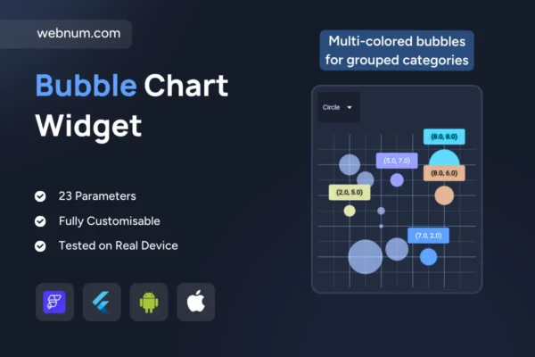 bubble chart, scatter bubble, bubble visualization, 3D data chart, chart widget, interactive chart, multidimensional data, XY bubble, axis grid chart, data visualization, chart component, FlutterFlow widget, bubble size metric, business intelligence chart, market analysis chart, analytics visualization, chart with tooltips, hover highlight, color-coded bubbles, grouped bubbles, data dashboard, performance tracking, real-time data chart, responsive chart, modern UI chart, chart for finance, chart for healthcare, chart for research, chart for social media, Flutter chart, FlutterFlow chart, customizable chart
