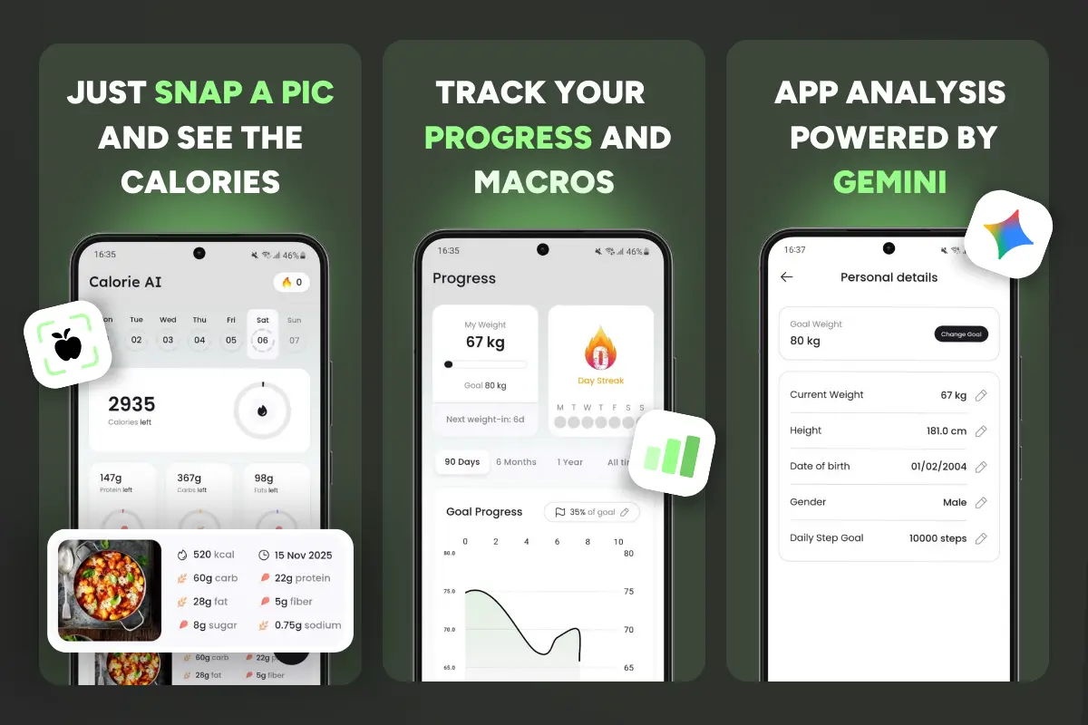 - ✅ Powered by Gemini – Designed to work perfectly with Gemini for food recognition and analysis.