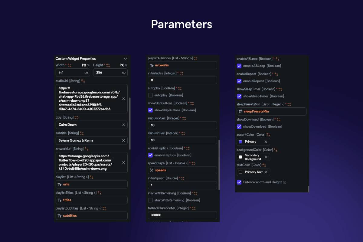 and FlutterFlow audio actions. -