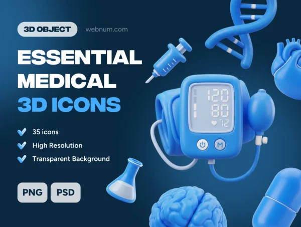 You’ll receive high-resolution 3D medical icons in a consistent blue style with transparent backgrounds, making them easy to integrate into any design system. Perfect for projects that require clarity, reliability, and a modern healthcare aesthetic.