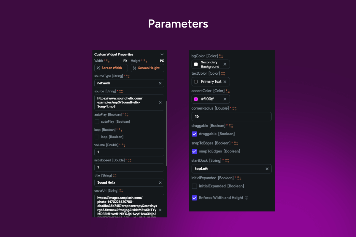 Keywords: FlutterFlow audio player, expandable mini player, double tap expand, glow card, pill player, micro seekbar, progress bar, play pause button, artwork thumbnail, title truncation, sticky footer player, inline audio, animated expand, collapse animation, queue view, now playing, responsive layout, minimal UI, clean design, neon accent, gradient accent, just_audio integration, audio service, Firestore binding, Supabase storage, REST datasource, accessibility, haptic feedback, modern UX, mobile media player, Flutter widget, FlutterFlow component, compact player, soft shadow, rounded corners, chevron toggle, premium template.