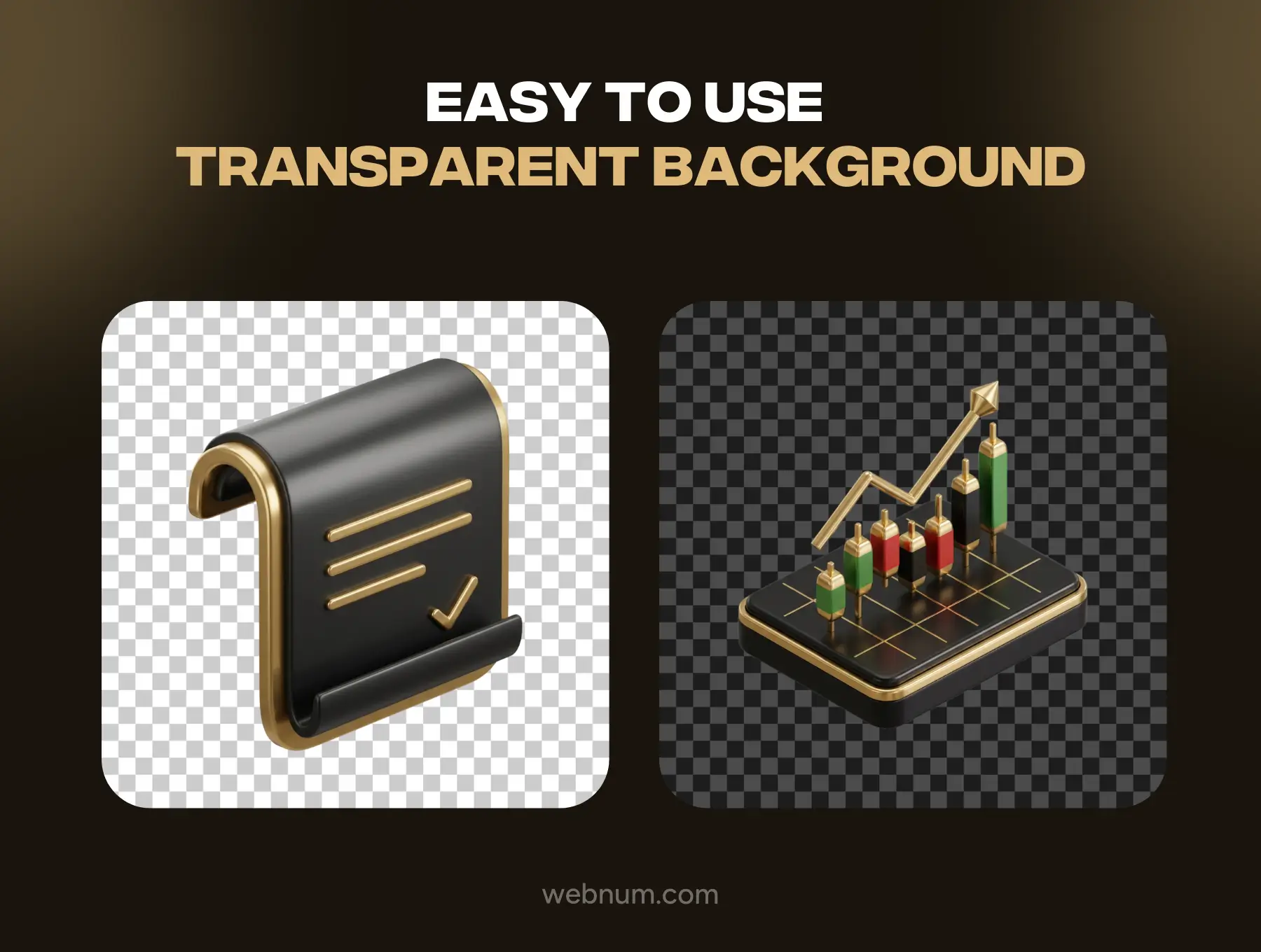 This pack includes high-resolution 3D icons with a refined black-and-gold style and transparent backgrounds, making them easy to integrate into any UI or brand system. Perfect for projects that require clarity, security, and a premium financial aesthetic.