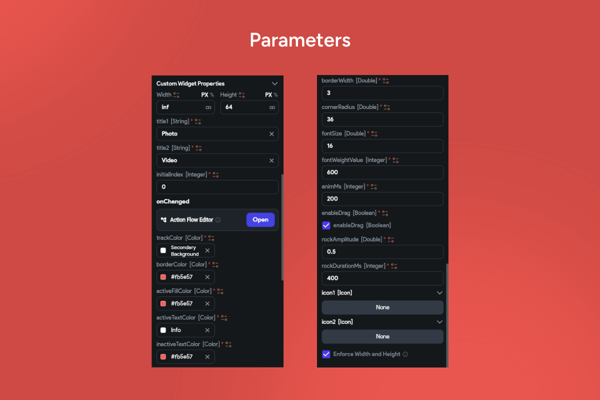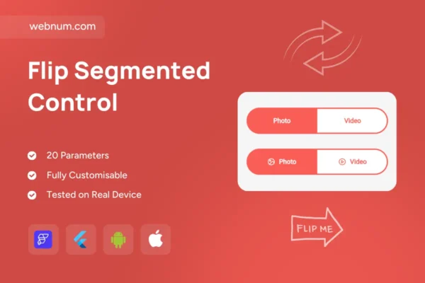 segmented control, pill toggle, tab bar, two-state switch, animated slider, photo video picker, UI switcher, accessible navigation, ripple, hover, icons, badges, responsive, Flutter widget, FlutterFlow component, haptics, theming, RTL, stateful toggle.