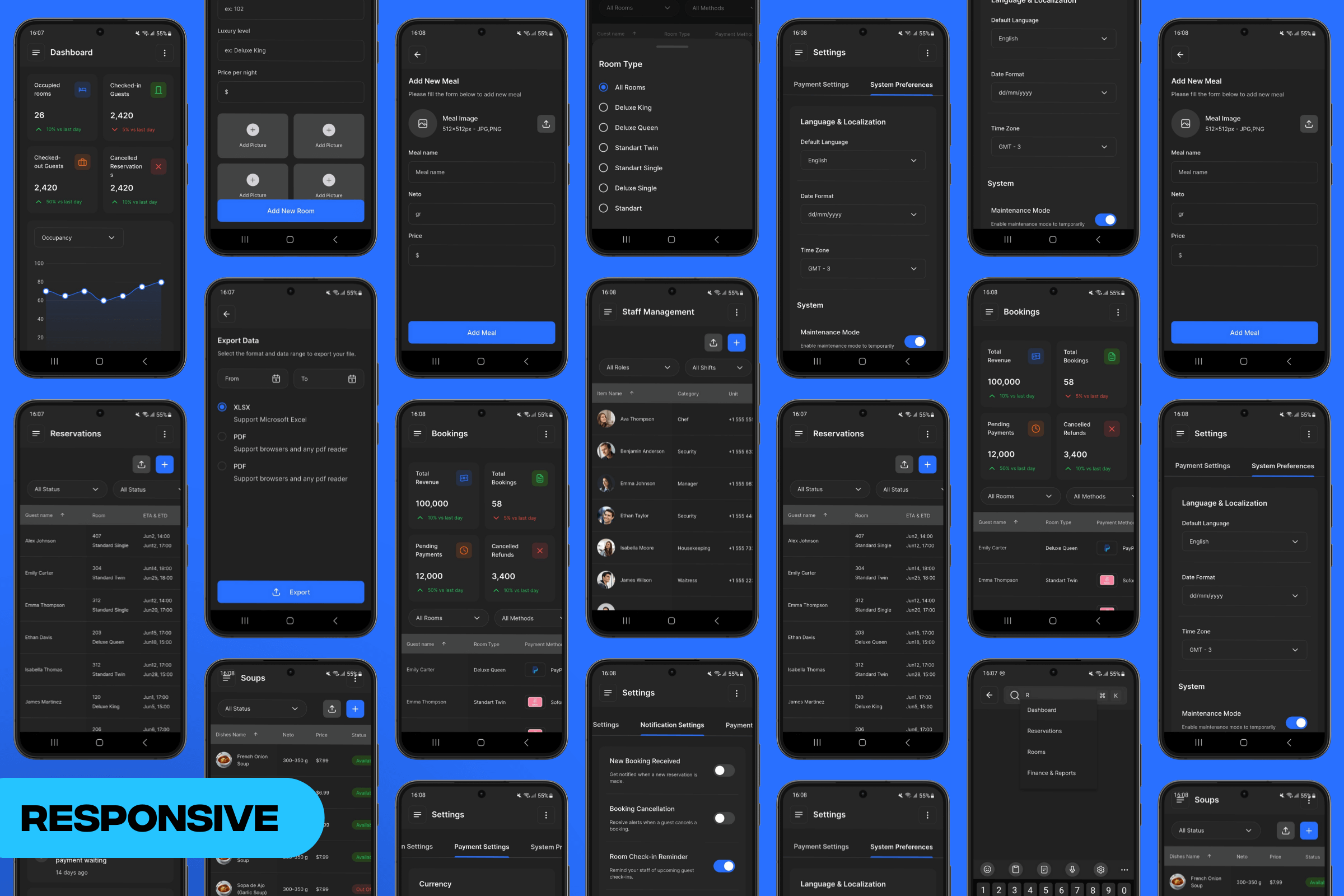 - β High-Quality UI/UX: Modern, responsive design following top hospitality app practices, with light & dark modes.