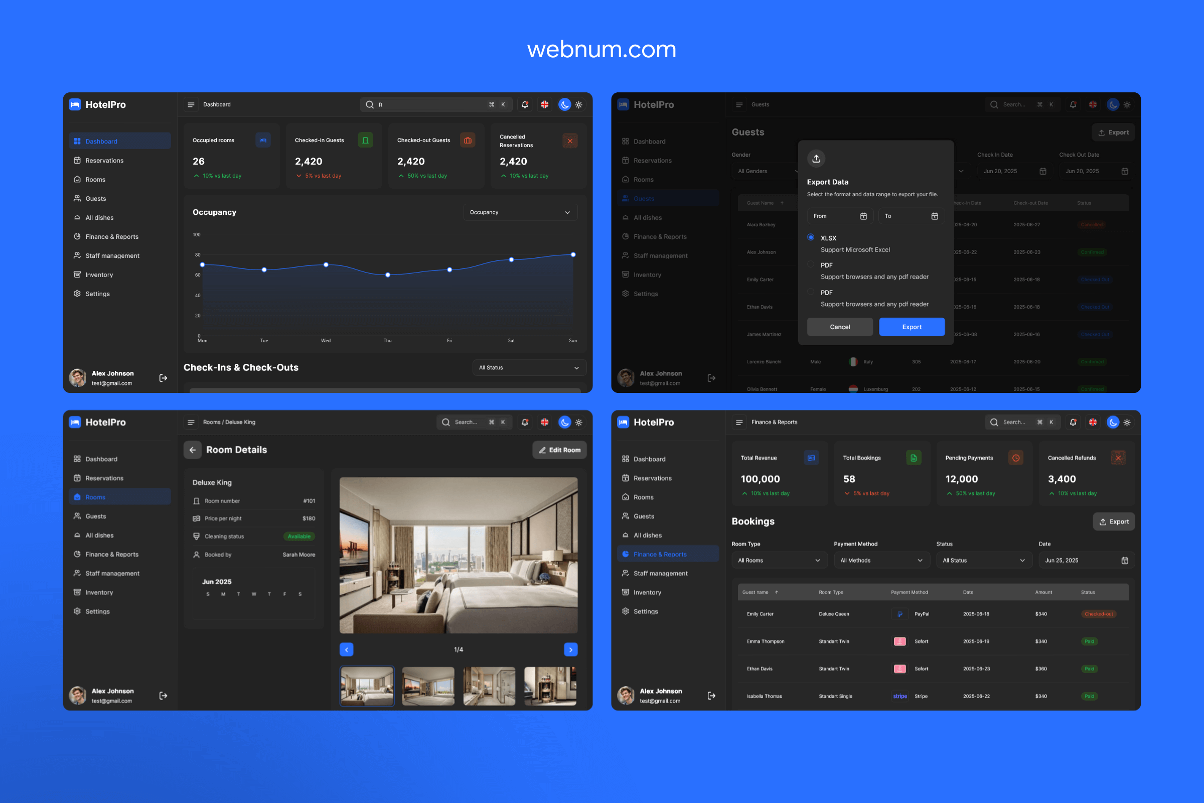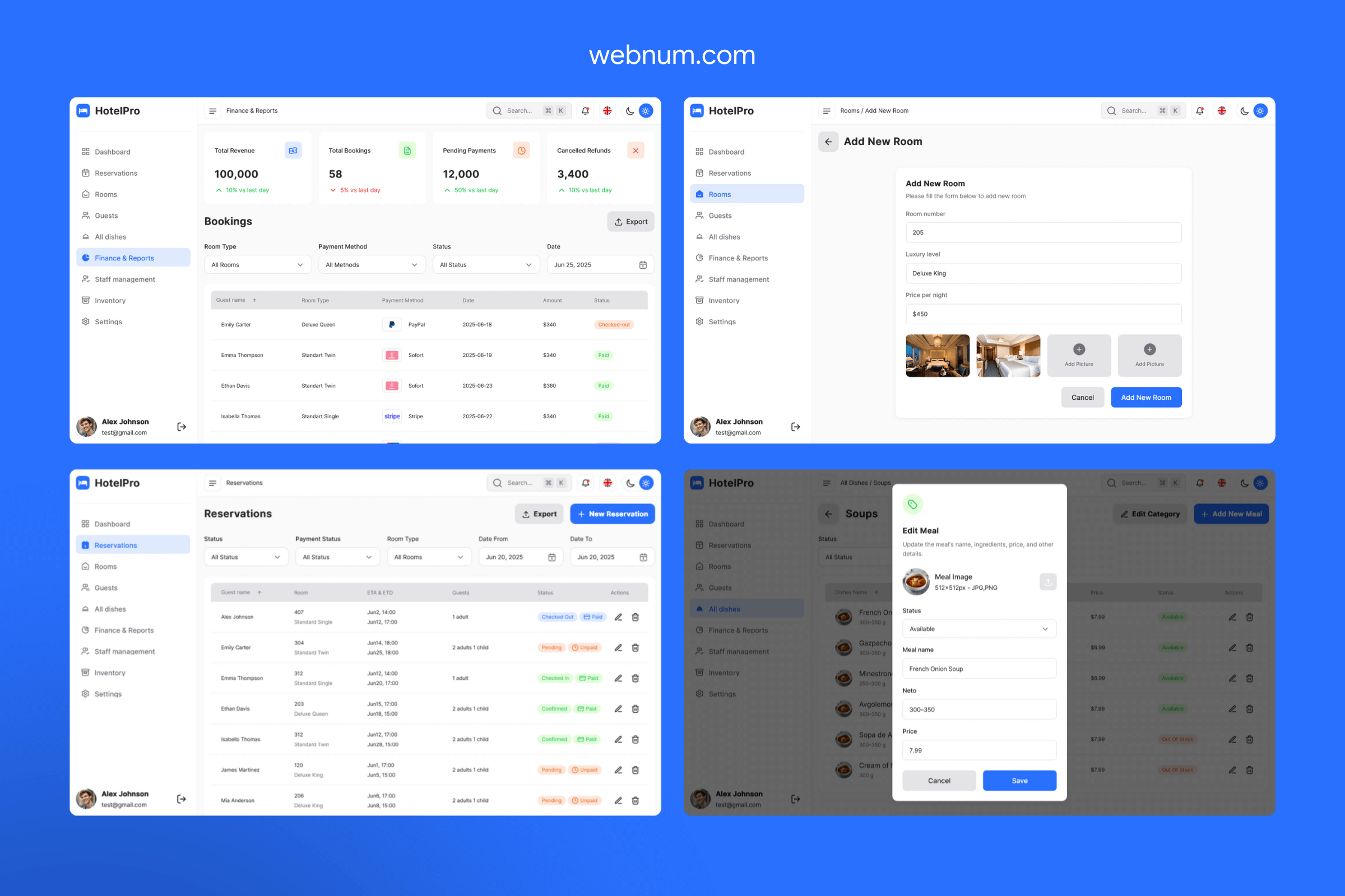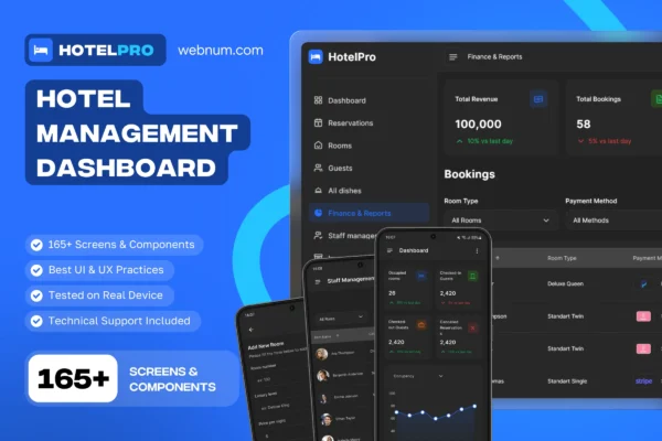 - β Save 250+ Development Hours: 165+ pre-built screens and components for dashboard, reservations, rooms, guests, finance, staff management, and more.
