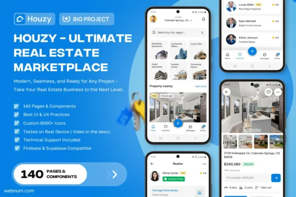 Houzy is a powerful app template with 140+ pages and components, built for creating feature-packed real estate applications. From property listings to client communication and agent tools, Houzy has everything you need to launch quickly and efficiently.β‘οΈ