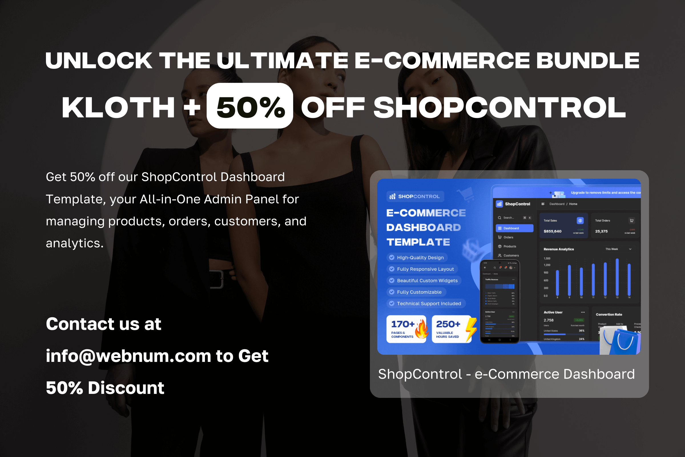 - 50% Off Admin Panel: Gain full control over your store with ShopControl’s (https://marketplace.flutterflow.io/item/25cVVTZY1Mtdp2cbxwuz) powerful dashboard at half price: inventory management, order processing, customer insights, and analytics, everything you need to run your business confidently.