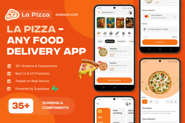 - ✅ Save development time: 35+ pre-built screens & components for menu, cart, checkout, orders, profile and more.