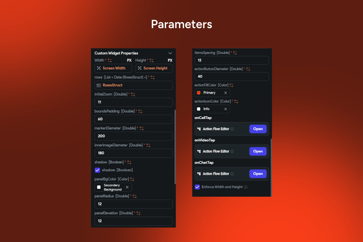 Cross-platform: Google Maps / Mapbox support; Flutter/FlutterFlow components and theming variables.