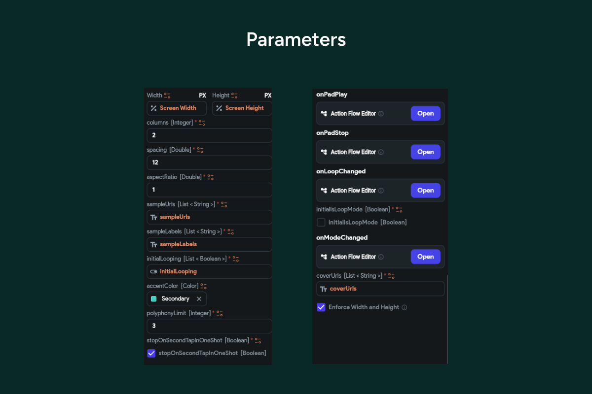 Great for: drum pads, DJ tools, podcast SFX boards, quiz buzzers, classroom sound kits, meditation/ambience loops, and quick audio prototyping inside FlutterFlow.