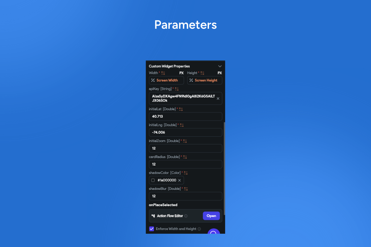 Configurable search scope (country/lat-lng bias), min chars, max results.