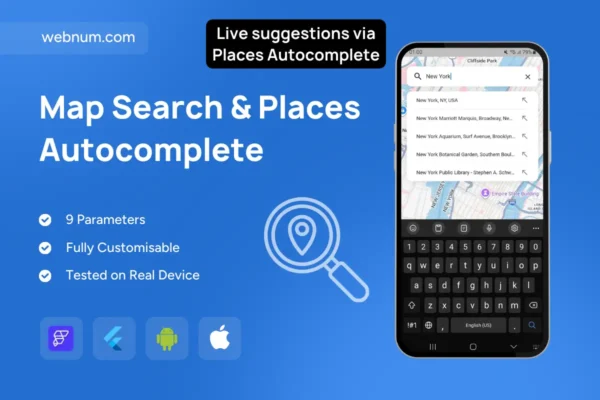 Keywords Maps, Places Autocomplete, Geocoding, Map Search, Google Maps, Camera animate, Marker, Debounce, Session token, POI, Location picker, Mobile UX.