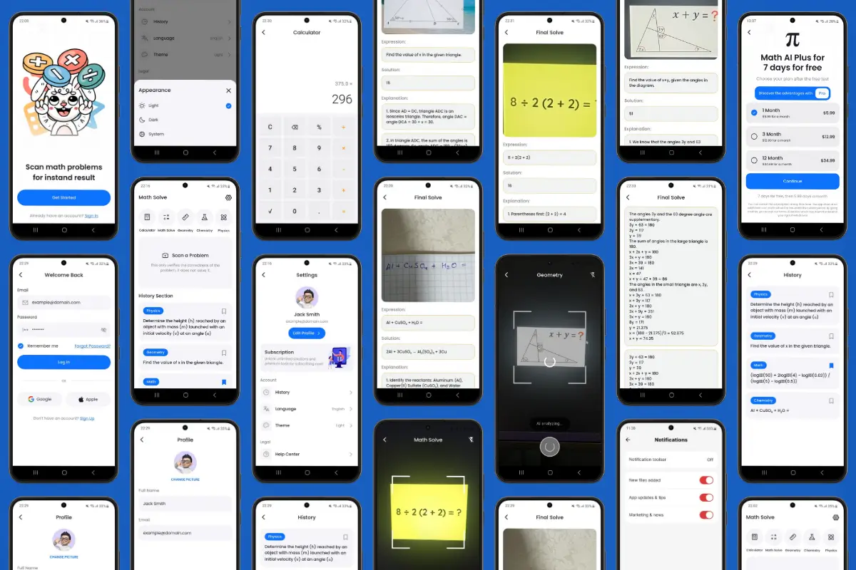 Keywords: photo math solver app, math solver template, camera math solver, scan math problems, equation scanner app, step-by-step math solutions, math explanation app, homework helper app, student study app, education app template, math learning app UI, geometry solver app, physics problem solver, chemistry homework helper, multiple subjects study app, camera to solution flow, scan analyze answer explanation, OCR math scanner UI, math problem recognition, word problem solver app, algebra solver app, calculus solver app, math practice app, exam prep app, back to school app, parent student learning tool, tutoring helper app, subscription screen UI, in-app subscription flow, monetization ready app, recurring revenue app template, premium education app UI, student-friendly interface, modern learning UI, onboarding for students, answer and explanation screens, solution history UI, save and favorites UI, share solution feature, AI powered education app, AI math solver app, integrate AI model, backend ready template, production-ready FlutterFlow template, ready-to-ship UI kit, iOS education app UI, Android education app UI, mobile-first education design, FlutterFlow, Flutter, FlutterFlow template, FlutterFlow education app, FlutterFlow AI app, Flutter education template, Flutter camera app, Webnum, Webnum templates, Webnum FlutterFlow, Webnum app template, no-code education app, low-code app builder