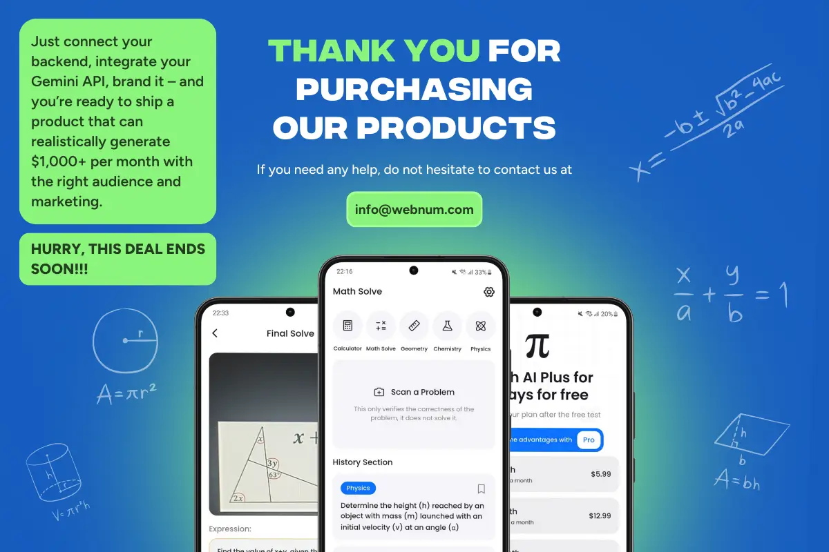 🚀 If you’ve ever wanted to launch your own Photo Math Solver app like the big players – but without burning months on design and front-end – Math AI is your shortcut.