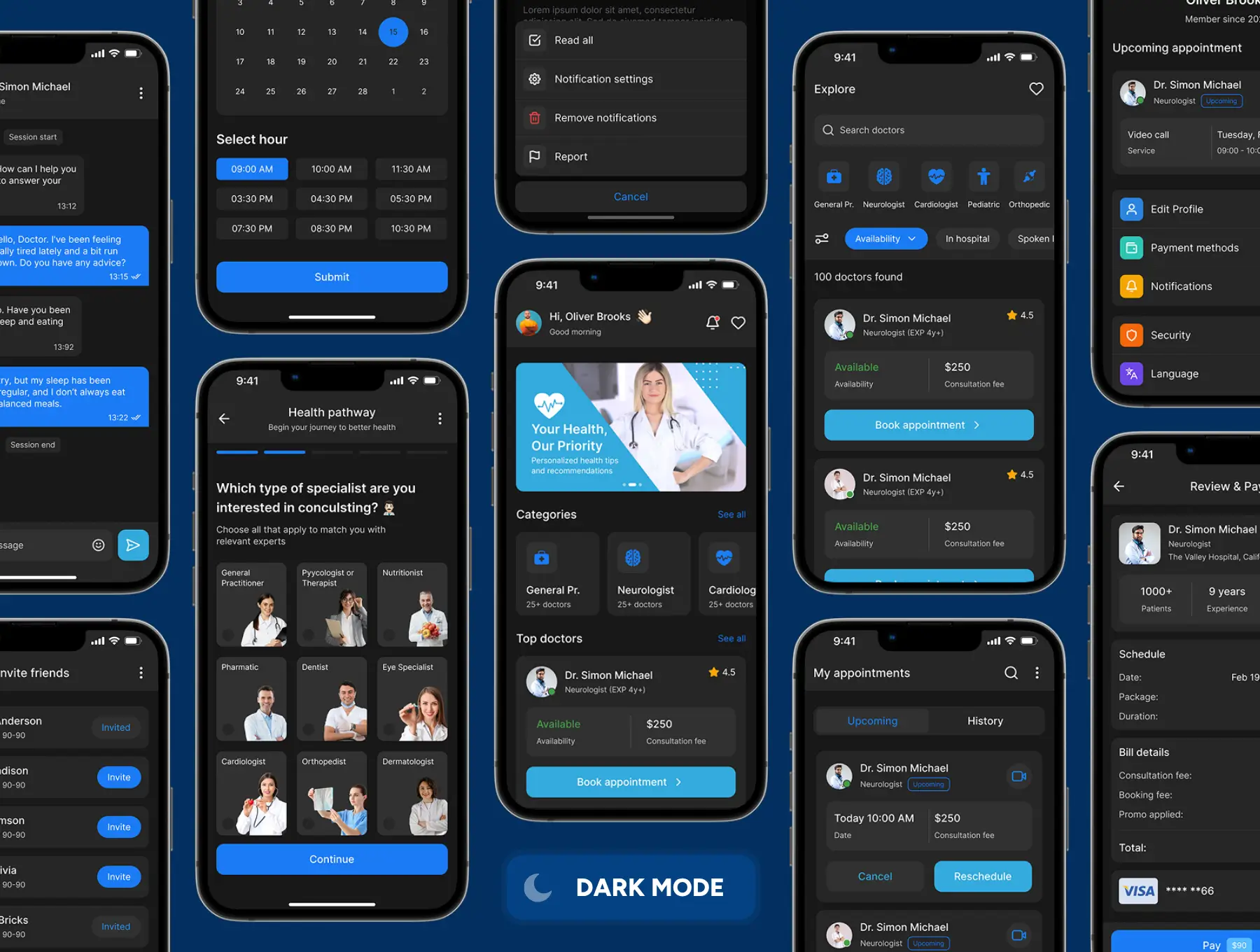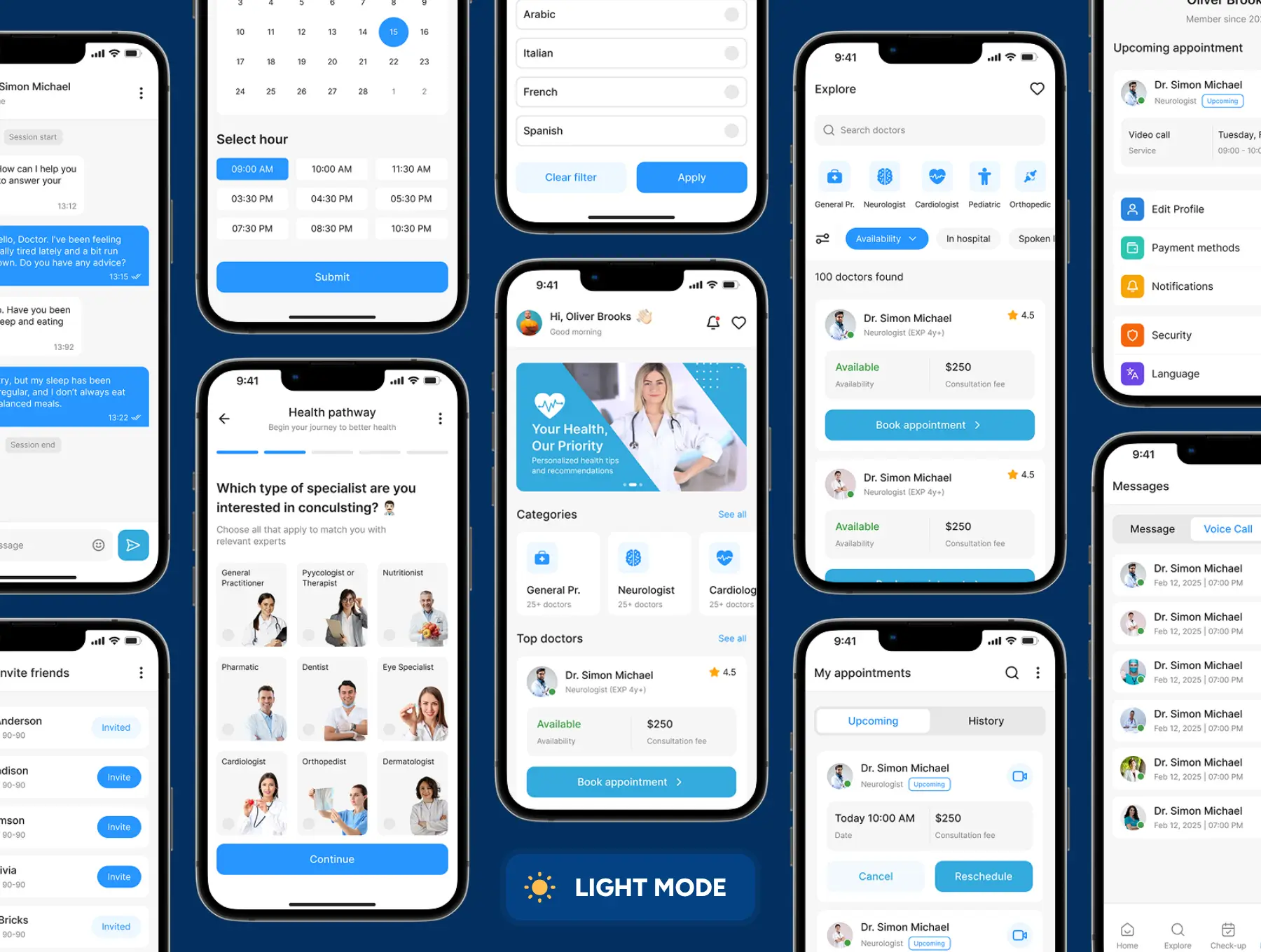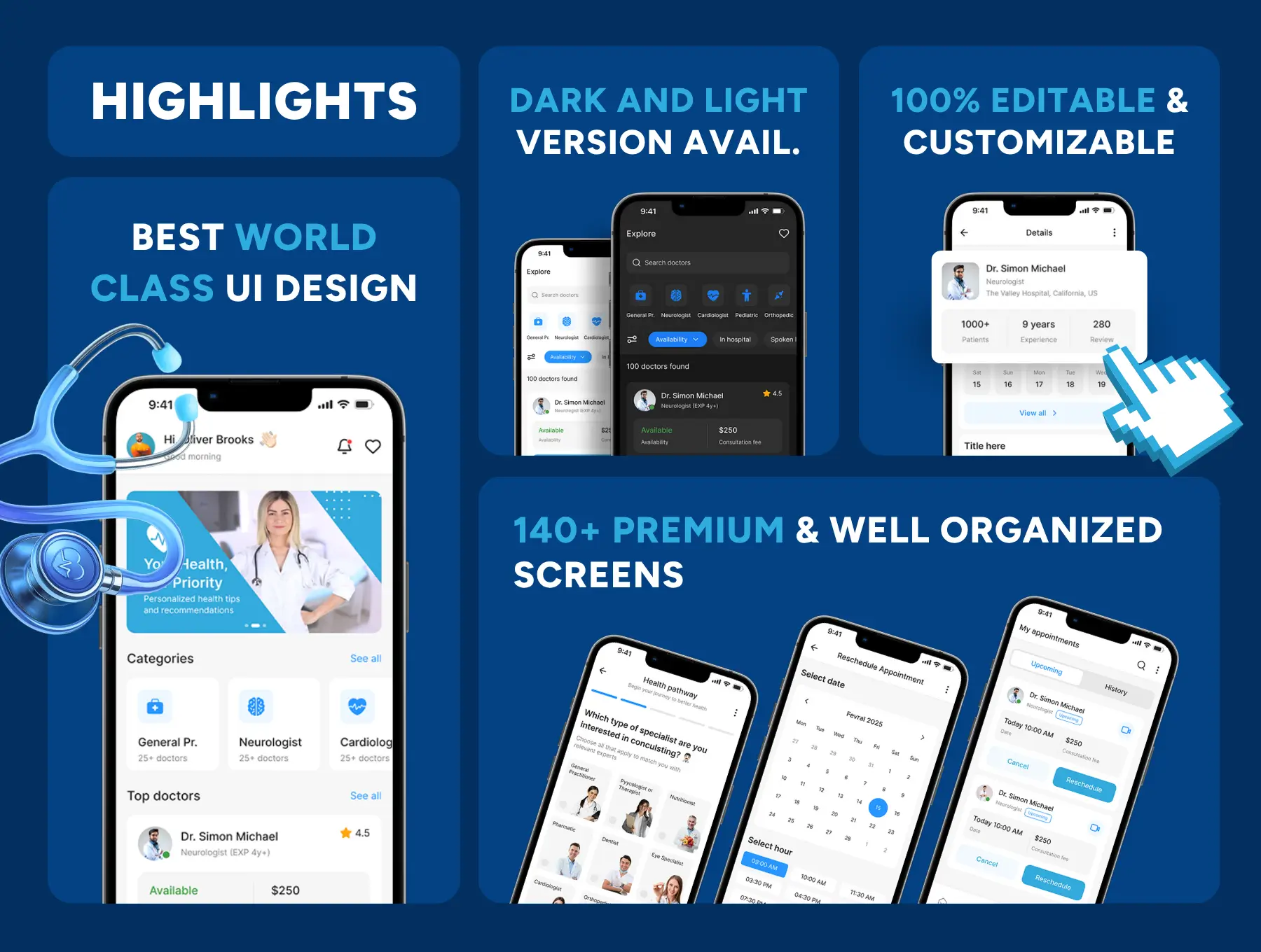 Launch a telehealth or clinic product fast. Medix is a production-ready doctor appointment app ui kit with Dark & Light themes, a complete design system, and 140+ polished screens covering the entire care journey β from onboarding to booking, messaging, and follow-ups. Rebrand in minutes, keep everything consistent, and ship faster. β¨