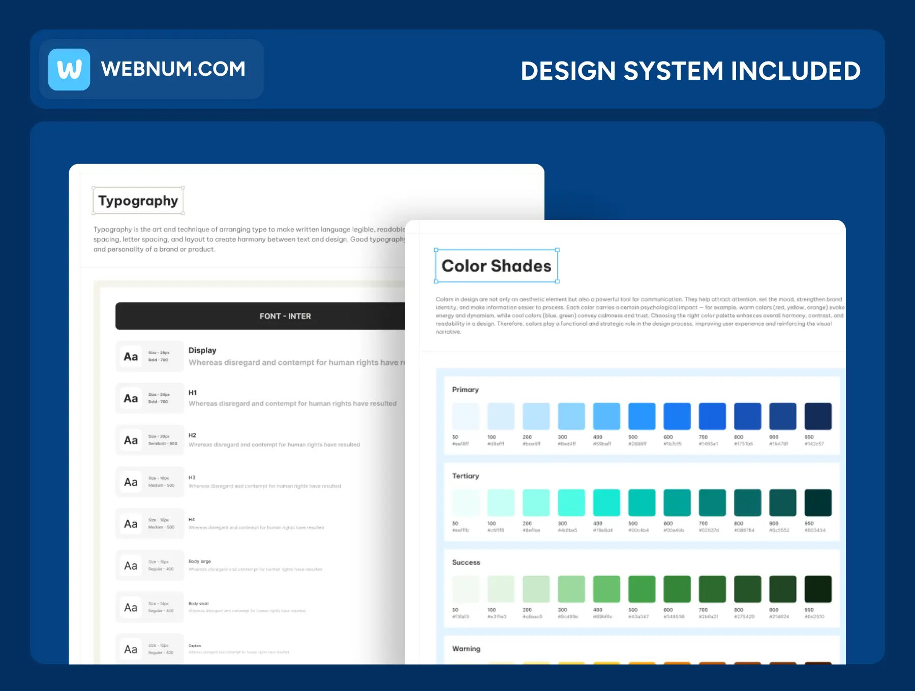 π§ Design System: color tokens, Inter type scale, grids, spacing