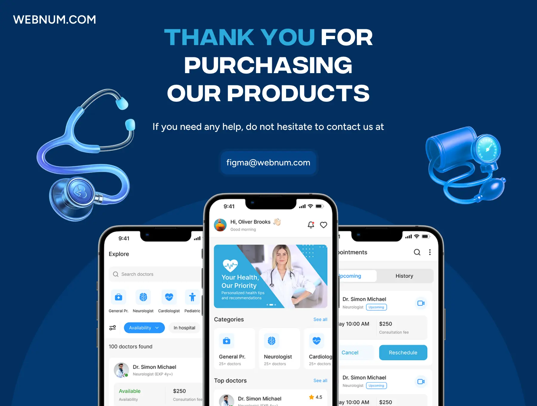 Product teams building telehealth, clinic, or appointment apps; startups validating a healthcare MVP; agencies needing a reusable medical design system; hospitals/clinics launching quick white-label patient apps.