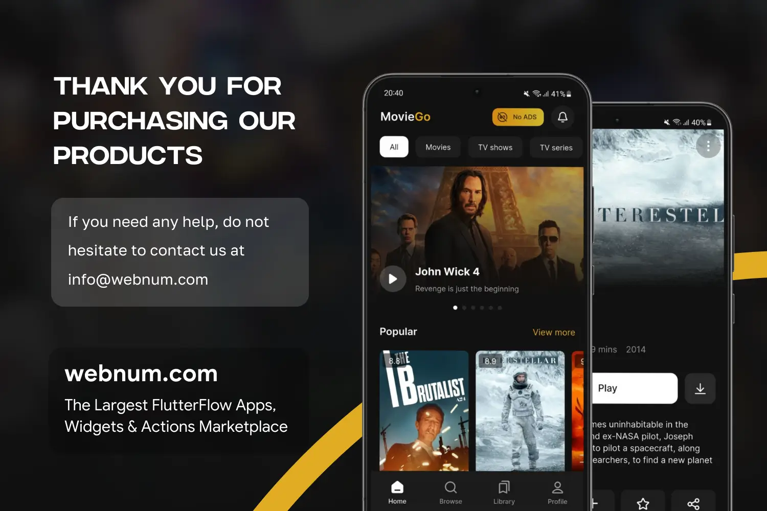 MovieGo is a functional, feature-rich FlutterFlow template designed for seamless movie and TV show streaming. Built with an intuitive UI and powerful backend capabilities, this app provides users with an engaging and personalized experience.