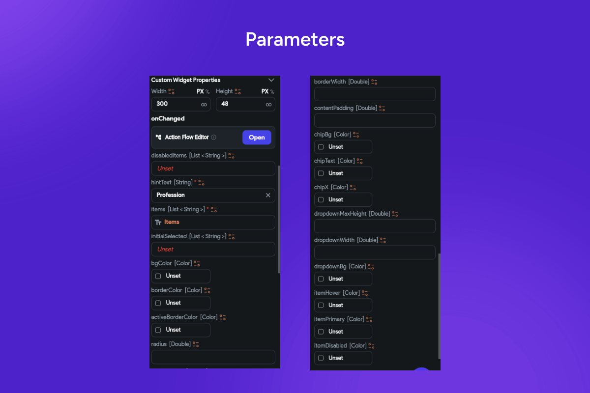 autocomplete, typeahead, search suggestions, highlighted match, substring highlight, debounced input, async datasource, API search, fuzzy search, spell correction, synonyms, ranking, scoring, recent searches, clear history, keyboard navigation, aria combobox, accessible search, RTL support, localization, group headers, icons avatars, secondary text, caching, rate limit, min chars, max results, no results state, loading indicator, dropdown overlay, rounded input, shadow panel, query builder, multi select chips, tag picker, command palette, quick actions, product search, place autocomplete, Flutter widget, FlutterFlow component.