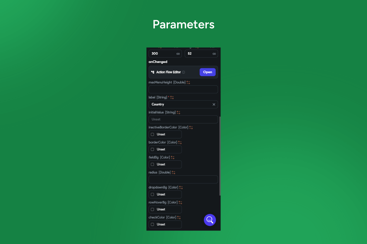 country select, country dropdown, single select, radio list, flag icons, search country, typeahead, debounced search, ISO 3166, dial code, phone code, favorites pin, grouped by region, sticky headers, clear selection, placeholder, disabled options, required field, validation, initial value, async options, API data, loading state, empty state, virtualization, portal overlay, smart positioning, keyboard navigation, ARIA combobox, accessibility, localization, RTL support, responsive UI, mobile web, form field, admin dashboard, booking form, Flutter widget, FlutterFlow component, custom theming.