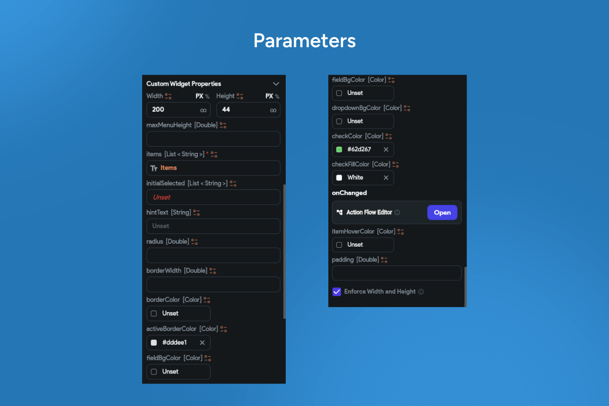 multi select dropdown, checkbox list, selected count, select all, clear all, chips summary, tags, search filter, grouped options, disabled items, max selection limit, validation message, async options, API data, loading state, empty state, virtualization, accessibility, keyboard navigation, screen reader, RTL support, localization, form field, Flutter widget, FlutterFlow component, e-commerce filter, settings picker, admin dashboard, project management, survey field, query builder, responsive UI, mobile web, theming, custom item builder, state persistence, smooth scrolling.