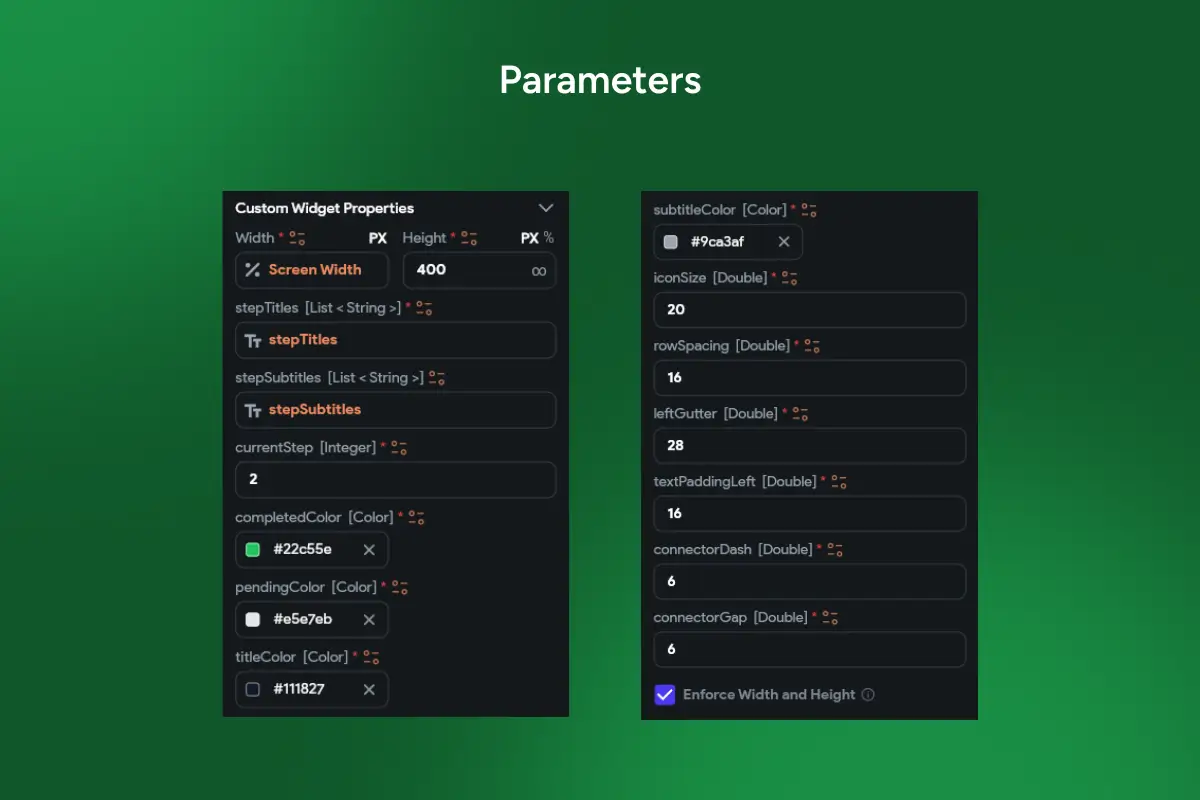 🎯 Control progress with currentStep (Integer) — instantly updates completed vs pending steps