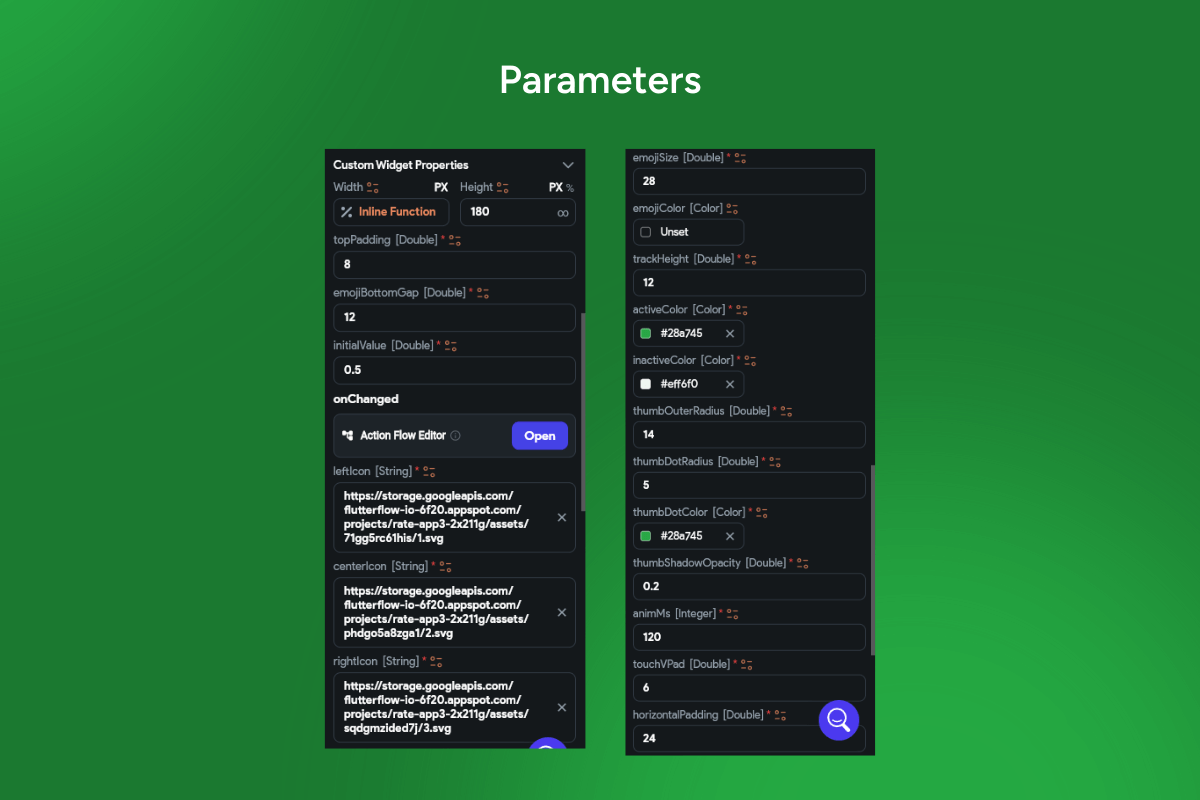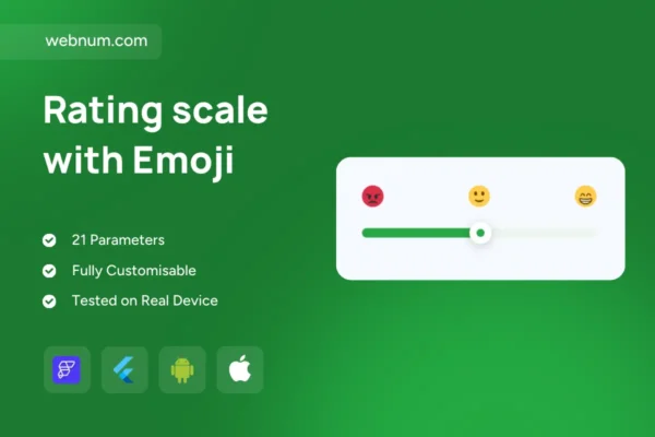 emoji slider, sentiment slider, satisfaction scale, CSAT, rating control, Likert slider, gradient track, anchor emojis, haptic feedback, ARIA slider, accessibility, keyboard navigation, analytics events, debounce, theming tokens, dark mode, Flutter widget, FlutterFlow component, mobile UX.