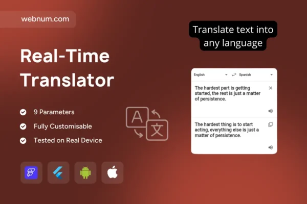 Real-Time Translator widget is a fast, modern translation widget for FlutterFlow/Flutter that lets users translate text into any language instantly β perfect for multilingual apps, global audiences, and international UX πβ‘οΈ. It delivers a clean βsource β translatedβ layout, supports quick language switching, and can be fully customized to match your brand.