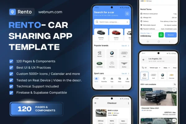 Rento is the ultimate app template for building a modern, feature-rich car-sharing platform! Whether you’re looking to connect users with the perfect ride or help hosts share their vehicles effortlessly, Rento is designed to deliver a seamless, professional experience for everyone.