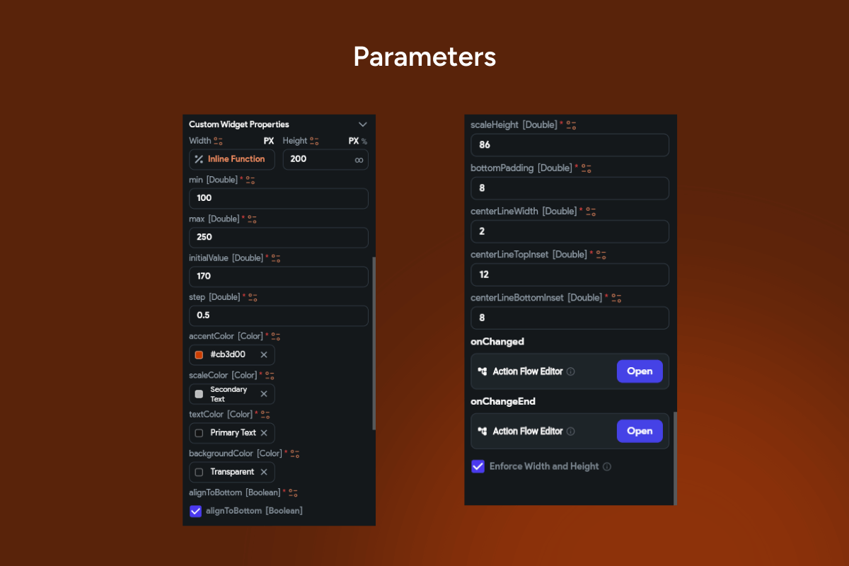 Keywords: FlutterFlow ruler picker, height picker, centimeter picker, cm scale, ruler slider, scale selector, numeric input, major minor ticks, step snapping, inertial scroll, centered indicator, live value, precision control, min max bounds, localized numbers, RTL support, haptic feedback, accessible control, high contrast, theming, accent color, measurement input, length selector, unit label, onChange callback, onEnd callback, Firestore binding, Supabase integration, REST API, mobile form, fitness app, profile setup, medical form, garment sizing, responsive UI, dark mode, light mode, Flutter widget, FlutterFlow component, modern UX.