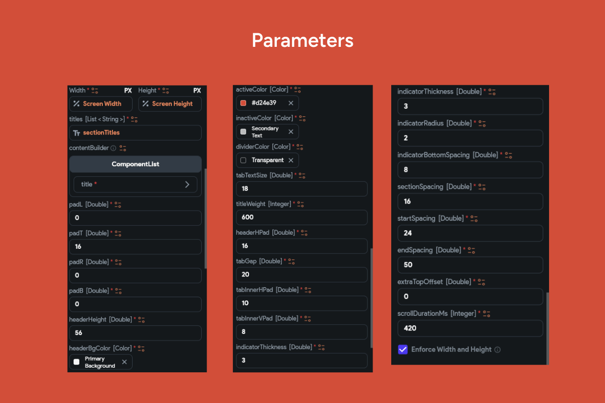 Keywords: category tabs, anchored tabs, sticky TabBar, scroll to section, scroll-spy, food menu, restaurant categories, section cards, list with headers, smooth scrolling, underline indicator, SliverAppBar, ListView, GlobalKey anchors, lazy loading, image cache, placeholder, count badge, card UI, rounded corners, mobile navigation, FlutterFlow widget, Flutter component, RTL support, localization, accessibility, dark mode, light mode, performance, analytics, e-commerce catalog, marketplace categories, menu browsing, UX pattern.