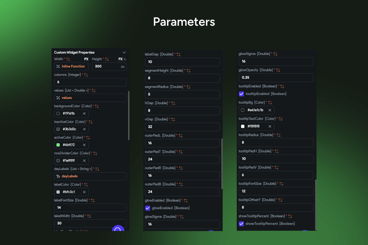 habit tracker, weekly tracker, segmented progress bar, streaks, checklist progress, daily goals, routine tracker, productivity tracker, dashboard widget, progress visualization, completion rate, goal tracking, session counter, heatmap bar, mobile dashboard, dark mode, Flutter chart, Flutter widget, FlutterFlow component