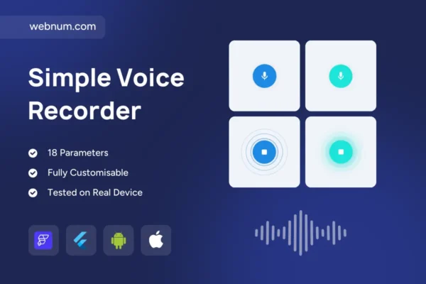 Simple Voice Recorder Widget is a premium, minimal voice recording widget for FlutterFlow/Flutter that lets users record audio with a single tap — with a clean mic button, optional animated waveform, and a smooth “recording” state UI 🎙️✨. It’s designed for modern apps that need fast voice capture without building a complex recording screen.