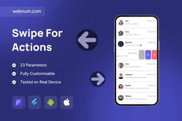 Multi-action swipe keeps your list clean while still giving power users fast controls. It reduces taps, speeds up workflows, and makes your app feel instantly premium and native.