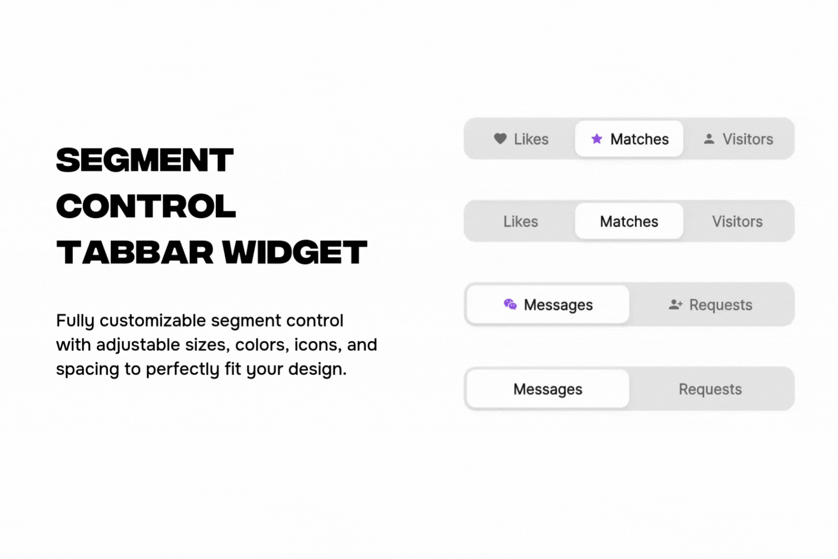Fully customizable segment control with unlimited tabs, adjustable sizes, colors, icons, and spacing to perfectly fit your design.