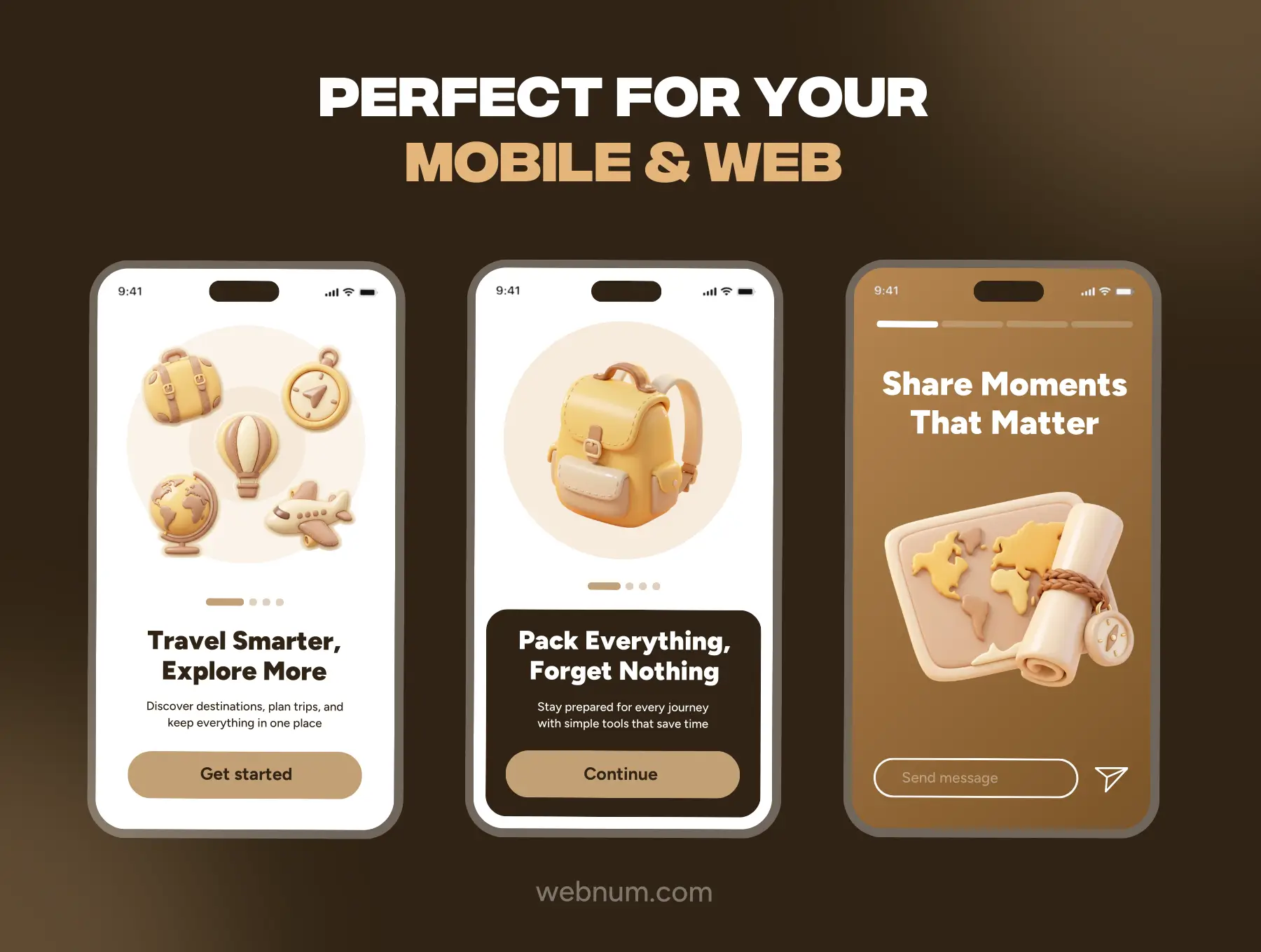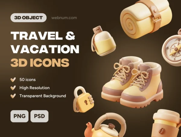 Travel & Vacation 3D icons is a premium icon pack crafted for modern interfaces and marketing visuals. Use it to create warm, friendly screens for mobile & web, from onboarding and empty states to hero sections and feature banners. You’ll get high-resolution 3D icons with a consistent style and transparent backgrounds, so you can drop them into any design instantly.