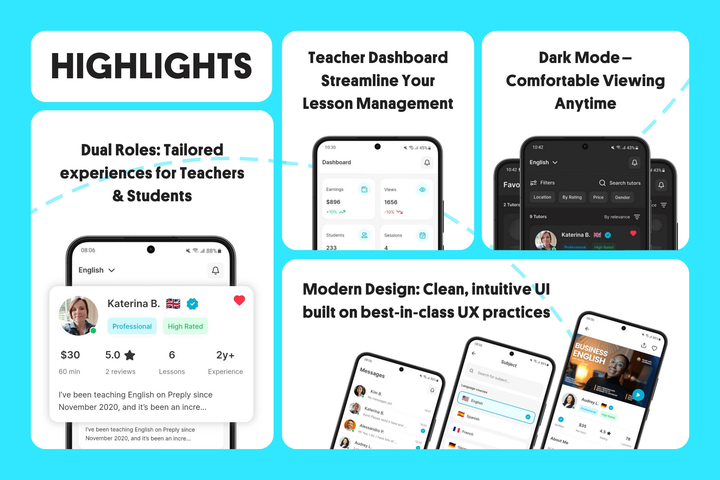 - ✅ Comprehensive Profiles & Reviews – Detailed tutor bios, certifications, sample lessons, and student feedback help learners choose with confidence.