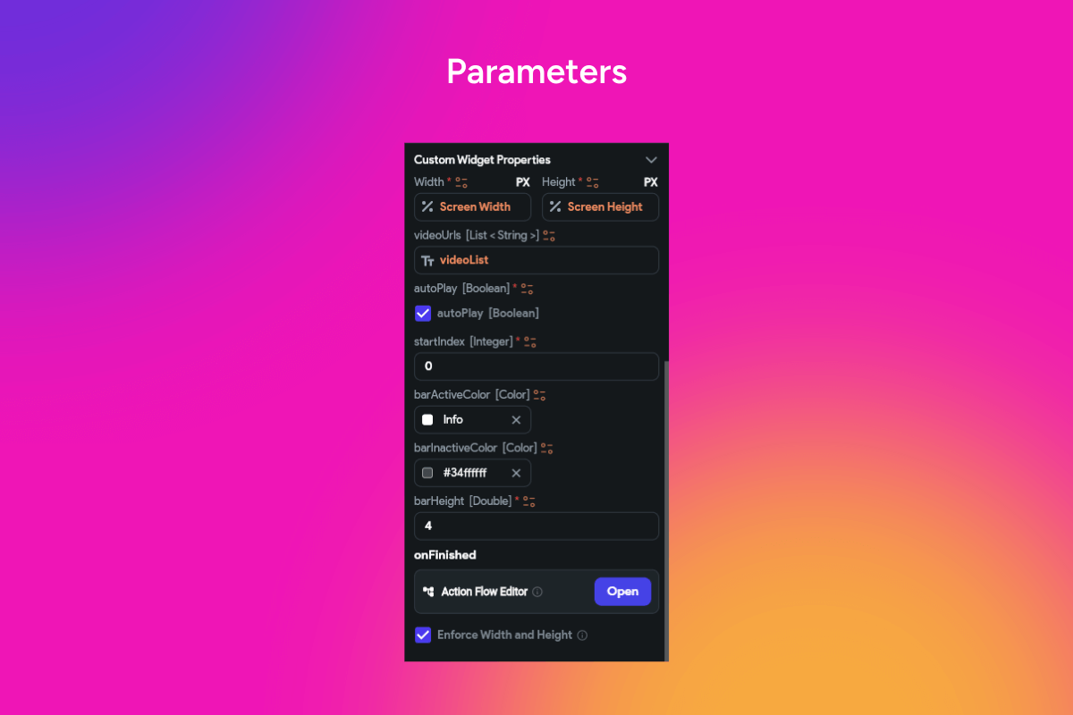 story viewer, stories, reels, full-screen media, progress bar, tap to skip, long-press pause, swipe navigation, autoplay, prefetch caching, reactions, quick reply, CTA swipe-up, Flutter/FlutterFlow widget